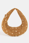 Introducing the Dome Studded Chrome Crescent Hand Bag, a stylish and edgy accessory perfect for any fashion-forward individual. This hand bag features a unique crescent shape adorned with chic chrome studs for a touch of glamour. The dome detailing adds a modern and futuristic element to this classic design. Carry your essentials in style with this statement piece that will elevate any outfit. Make a bold fashion statement with the Dome Studded Chrome Crescent Hand Bag!
