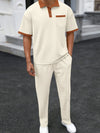 Men's Full Size Waffle-Knit Contrast Polo and Pants Set Plus Size