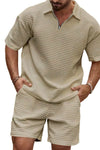 Men's Full Size Zip Collar Short Sleeve Top and Shorts Set Plus Size