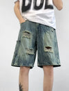 Men's Plus Size Distressed Wide Leg Denim Shorts