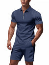 Men's Plus Size Quarter Zip Short Sleeve Top and Shorts Set