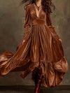 Velvet V-Neck Long Sleeve Ruffled Dress